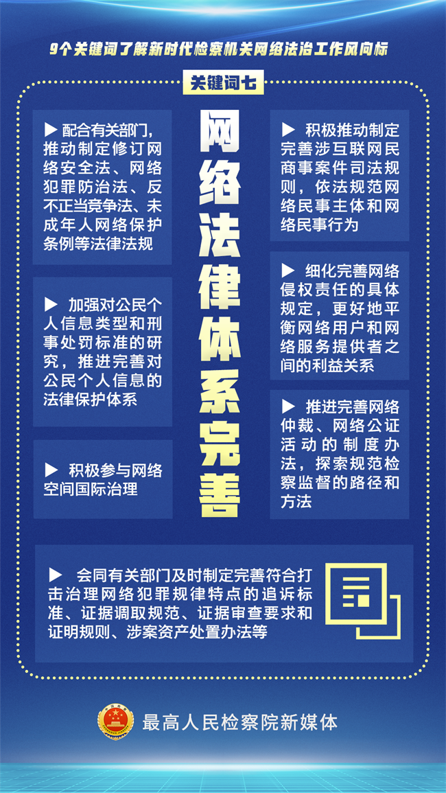 近日,最高检印发《关于加强新时代检察机关网络法治工作的意见》,对加强新时代检察机关网络法治工作提出具体要求,以检察工作现代化融入和助力网络法治工作现代化。