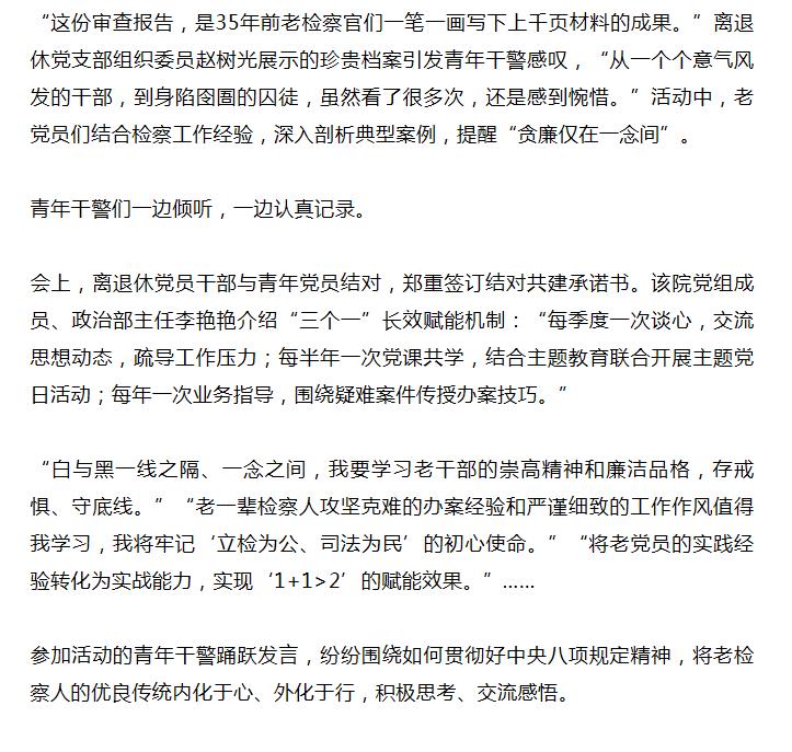 银青结对传薪火 廉洁从检守初心